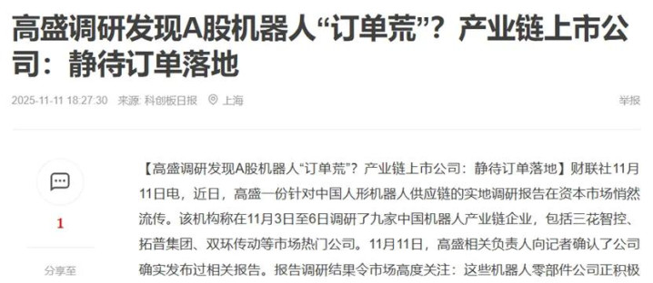 还有媒体报道,高盛近日针对中国人形机器人供应链的报告显示,多家零部件公司积极规划产能,但尚无明确订单或量产时间表,引发市场对“产能过剩”疑。