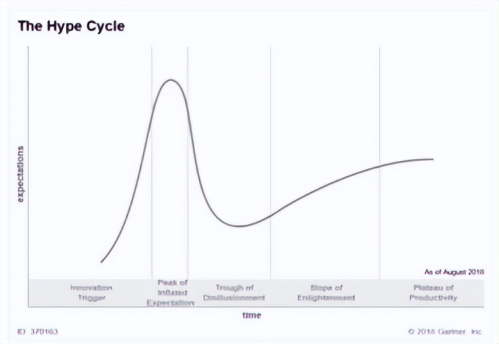 力场君倒是想起来,全球最具权威的IT研究与顾问咨询公司的高德纳咨询,曾提出过技术成熟度曲线,这个理论特别适用于描述新技术、新概念的接受过程,它提出,一个新技术在推出初期会经历短暂的快速爆发,形成“过高期望的峰值”后会经历迅速跌入“泡沫化的低谷期”,之后技术经过实践检验和不断完善,才会稳步爬进入主流市场。